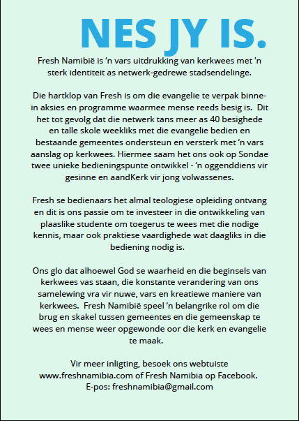 om kerk te wees. Fresh Namibië verbind gemeentes en gemeenskappe, en maak mense