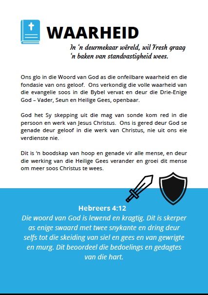 waarheid standvastig bly, ons in ‘n veranderende samelewing kreatiewe maniere moet vind