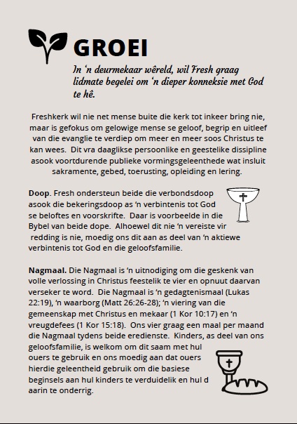 Ons ondersteun bestaande NG gemeentes en bedien besighede en skole met ‘n vars